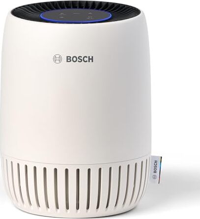 Bosch Air 1000 är en tyst luftrenare för rum upp till 23 m² (CADR 100 m³/h) med HEPA-filter som tar bort ultrafina partiklar, automatläge som anpassar rengöring efter luftkvalitet och USB‑C‑laddning.