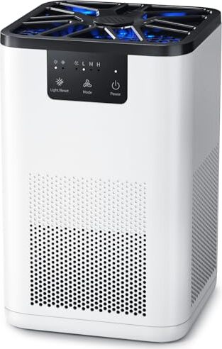 Denna luftrenare har ett kraftfullt HEPA-filter som tar bort 99.9% av allergener och andra partiklar ner till 0.1 mikron. Den är effektiv på stora ytor upp till 585 ft².