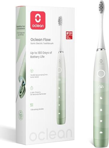 Oclean Flow är en kompakt eltandborste med 180 dagars batteritid, 5 borstningslägen och 76 000 borströrelser per minut för effektiv rengöring. Vattentät och med timer för optimal borstning.