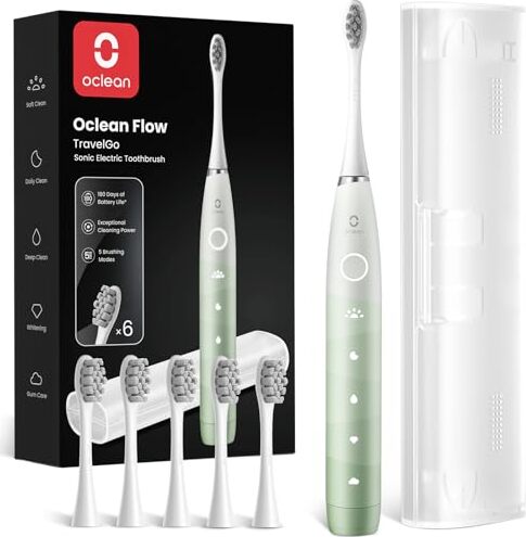 Oclean TravelGo FlowSet erbjuder 180 dagars batteritid och 5 borstningslägen, vilket gör tandrengöring enklare på resan. Den levereras med 6 DuPont borsthuvuden för optimal rengöring.