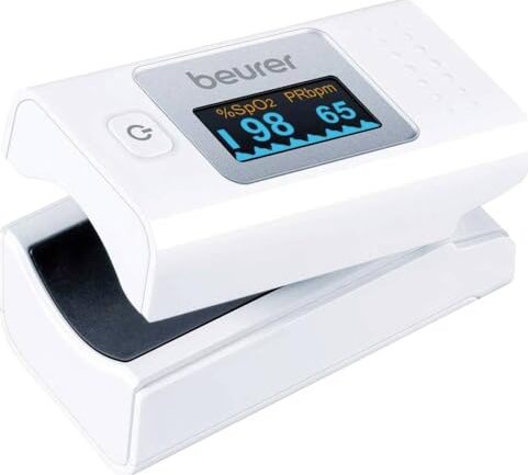 Beurer PO 40 pulsoximeter mäter syremättnad och puls med kliniskt validerad noggrannhet. Med en lättläst färgdisplay ger den tillförlitliga mätvärden, perfekt för hälsokontroll och sportaktiviteter.