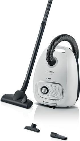 En tyst och effektiv dammsugare med 57 dB ljudnivå och hög filtrering. Den stora dammpåsen på 4,5 L ger lång användning utan byte.